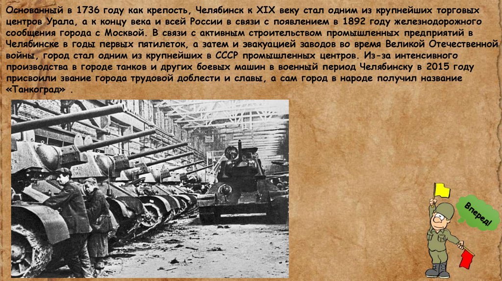 производства в городе танков и других боевых машин в военный период Челябинску в 2015 году