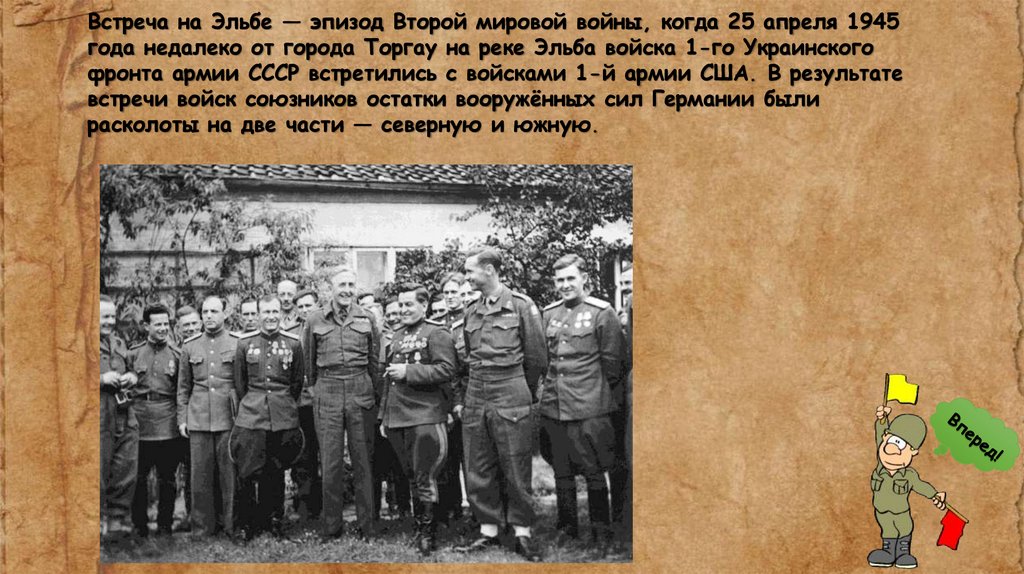 фронта армии СССР встретились с войсками 1-й армии США. В результате