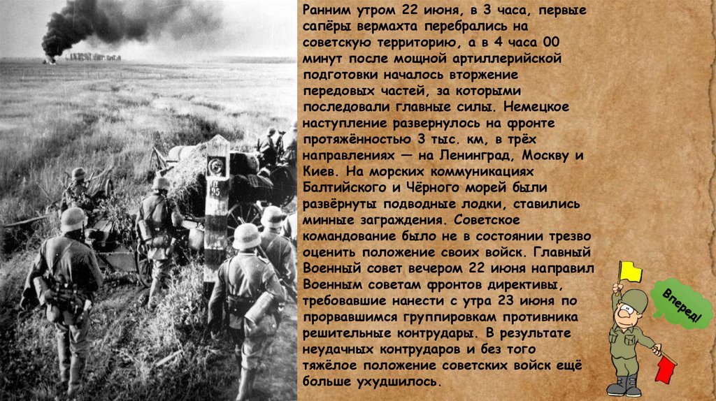 Ранним утром 22 июня, в 3 часа, первыесапёры вермахта перебрались на