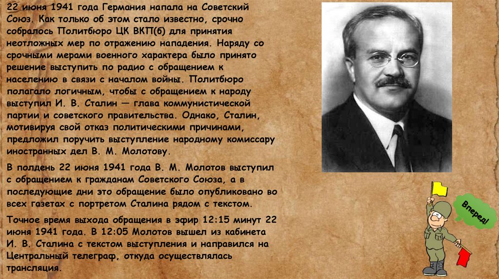 В полдень 22 июня 1941 года В. М. Молотов выступил
