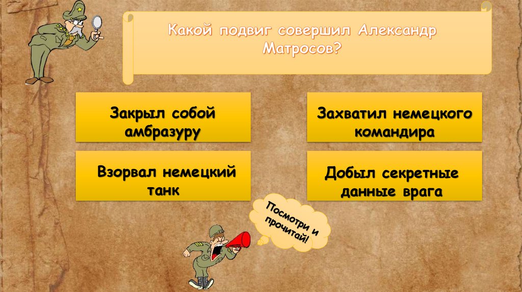 Матросов, пробравшись к дзоту, закрыл