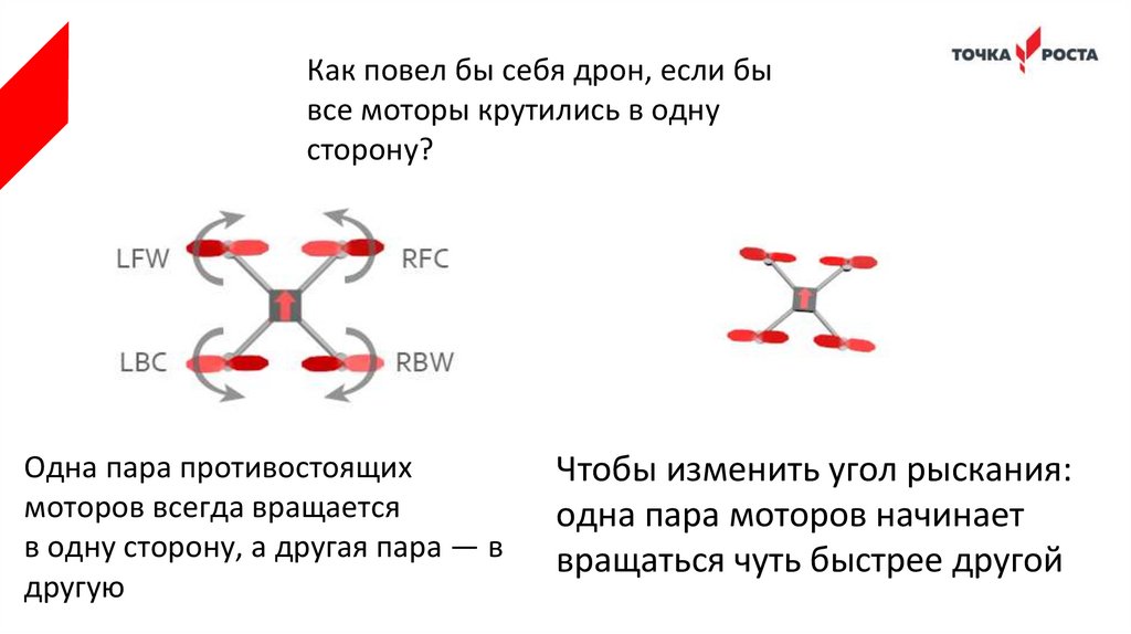 Как повел бы себя дрон, если бывсе моторы крутились в одну