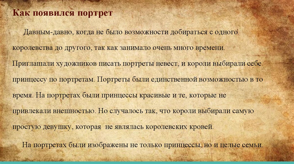 Как появился портретДавным-давно, когда не было возможности добираться с одного