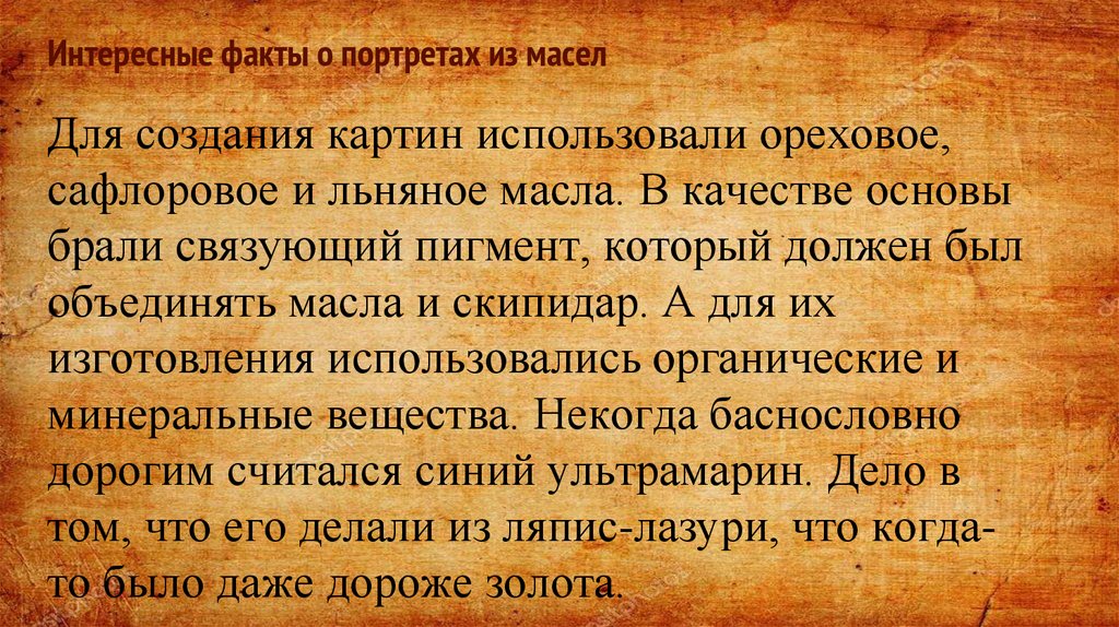 Интересные факты о портретах из маселДля создания картин использовали ореховое,