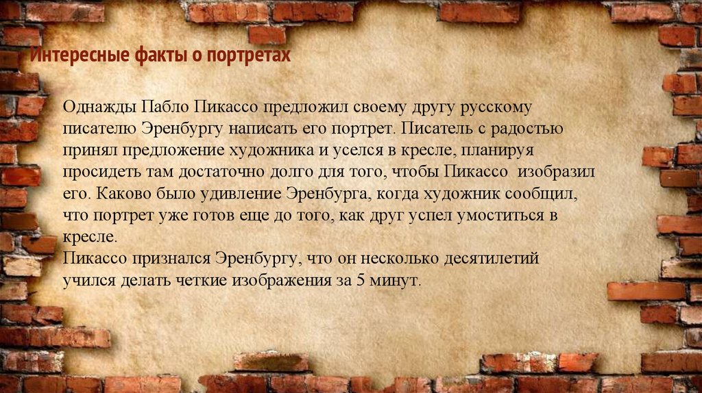 Интересные факты о портретахОднажды Пабло Пикассо предложил своему другу русскому