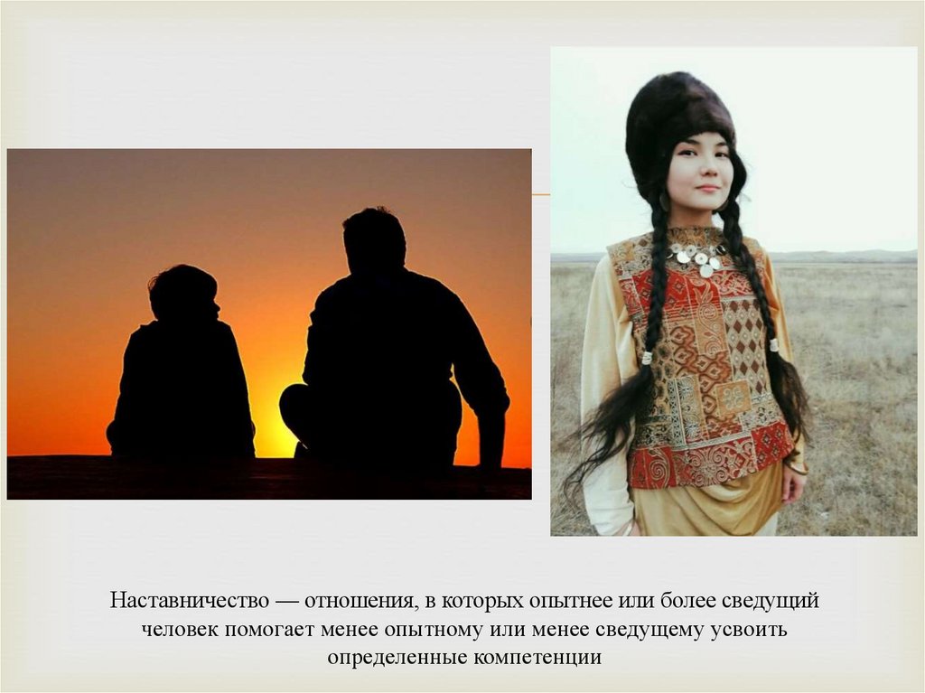 Наставничество — отношения, в которых опытнее или более сведущийчеловек помогает менее опытному или менее сведущему усвоить