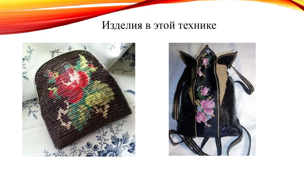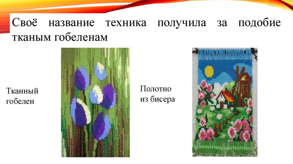 Техника позволяет создавать плоское и плотное бисерное полотно,бисерины при этом расположены строго одна над другой без смещения, в