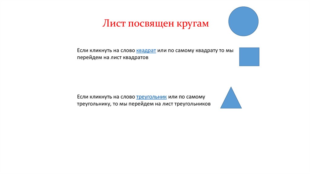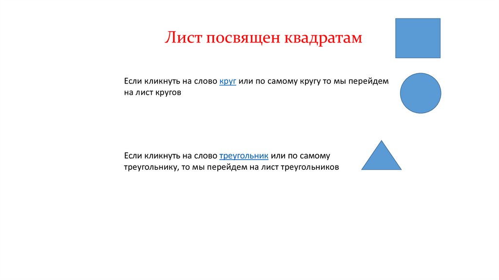 Лист посвящен квадратамЕсли кликнуть на слово круг или по самому кругу то мы перейдем