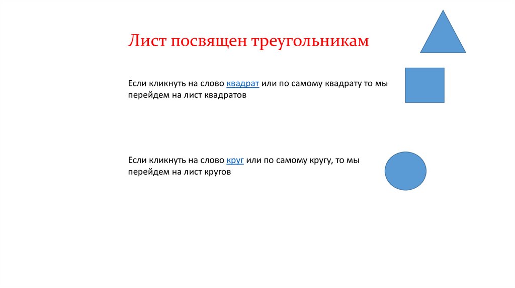Лист посвящен треугольникамЕсли кликнуть на слово квадрат или по самому квадрату то мы