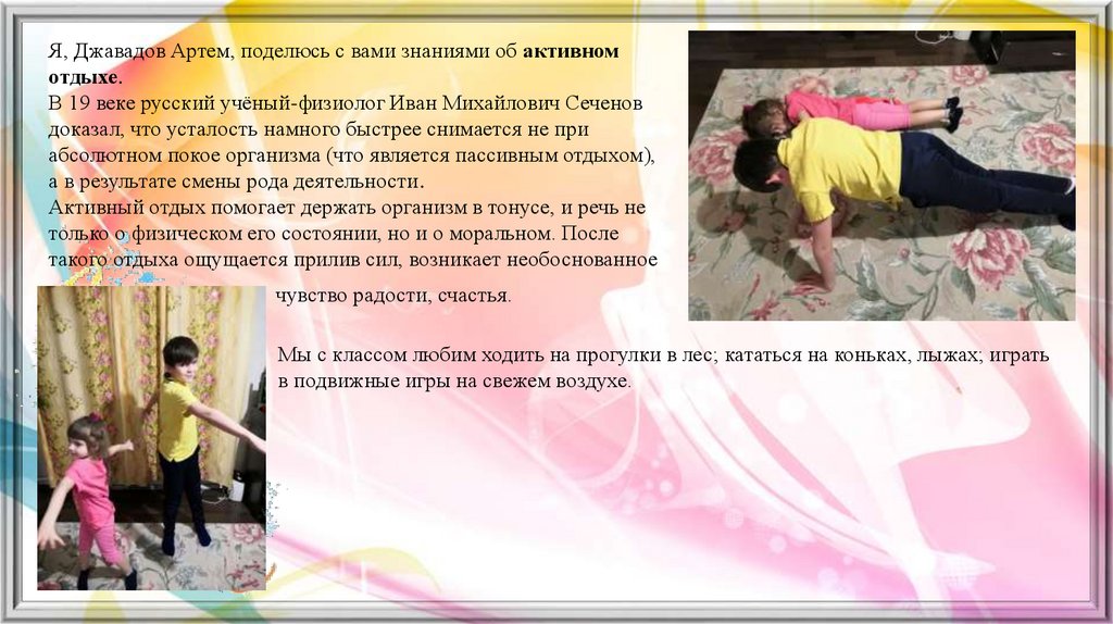 Я, Джавадов Артем, поделюсь с вами знаниями об активномотдыхе.