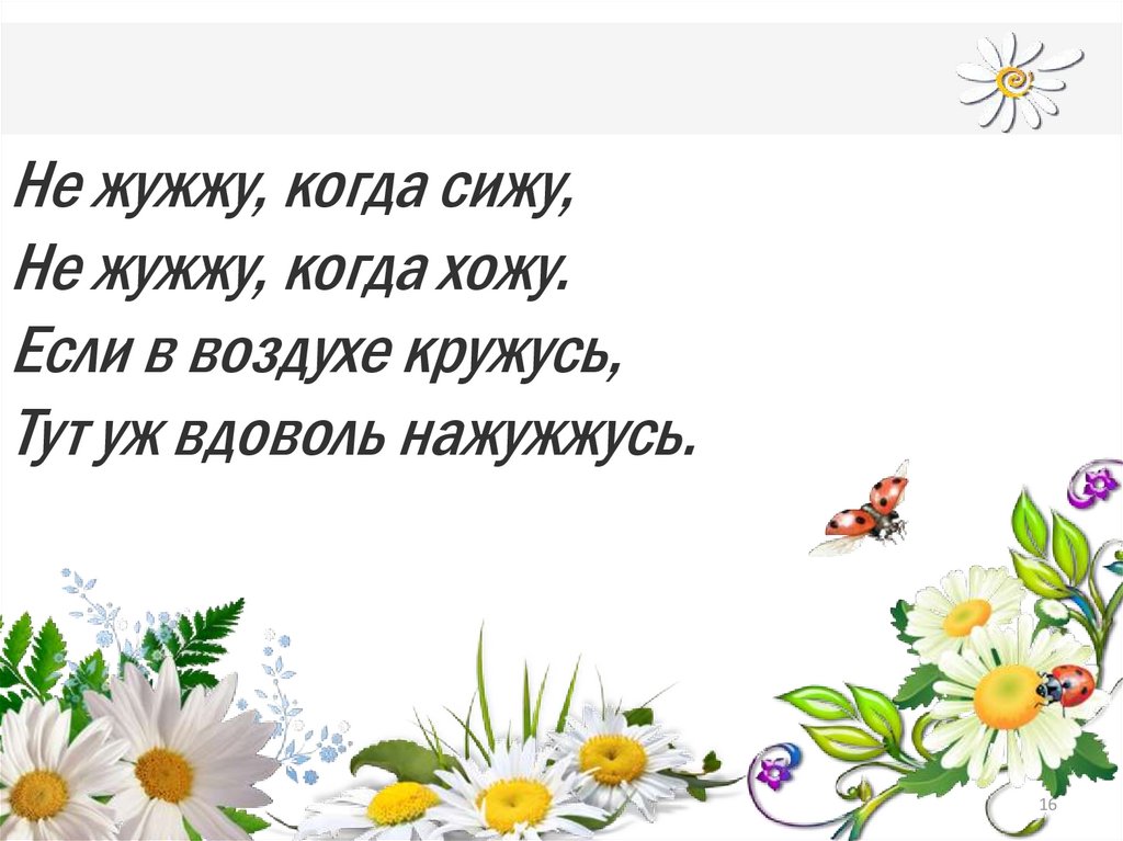 Не жужжу, когда сижу,Не жужжу, когда хожу.