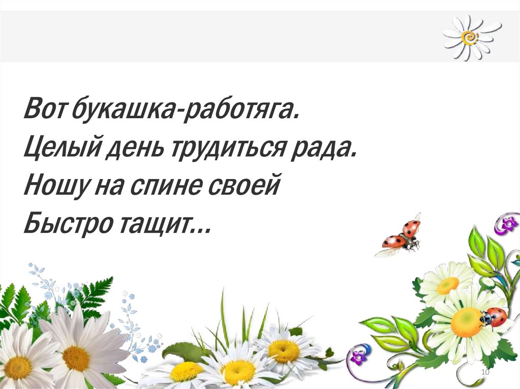 Вот букашка-работяга.Целый день трудиться рада.
