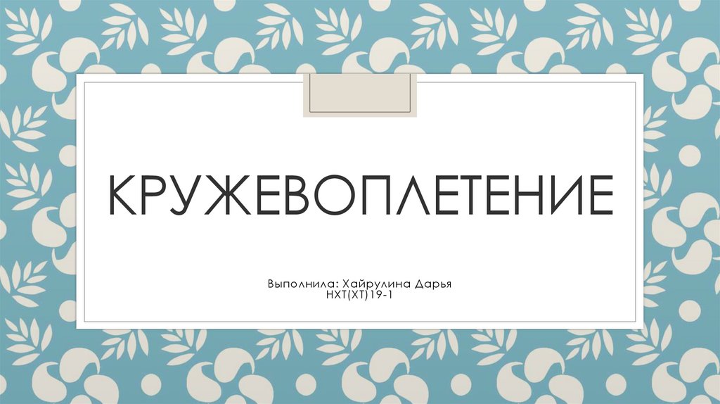 КРУЖЕВОПЛЕТЕНИЕВыполнила: Хайрулина Дарья