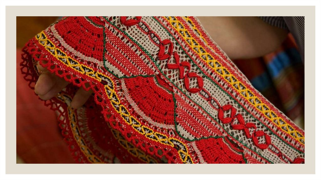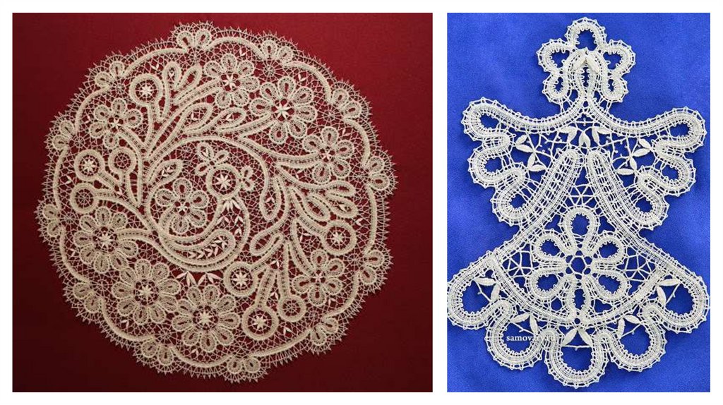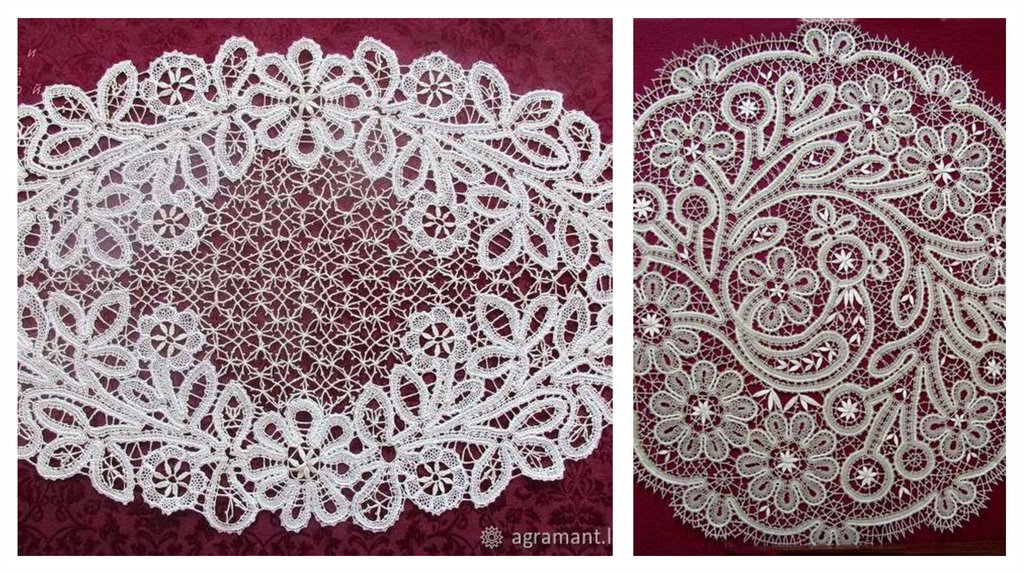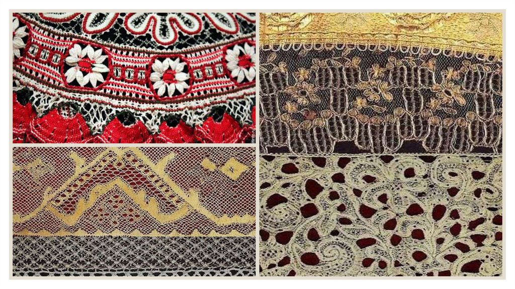2. Кружево —ажурный орнамент и изображение образуются в результате переплетения нитей.