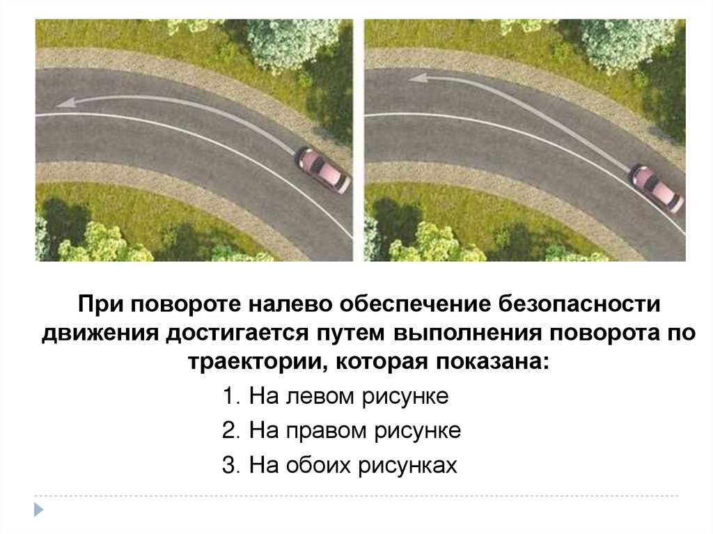 При повороте налево обеспечение безопасностидвижения достигается путем выполнения поворота по