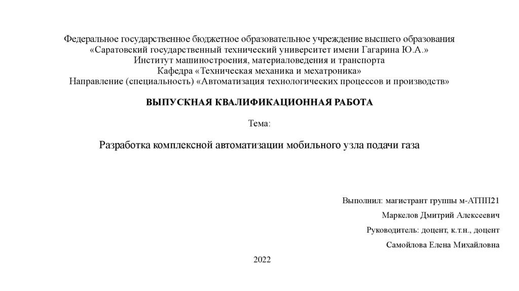 1. Федеральное государственное бюджетное образовательное учреждение высшего образования «Саратовский государственный технический