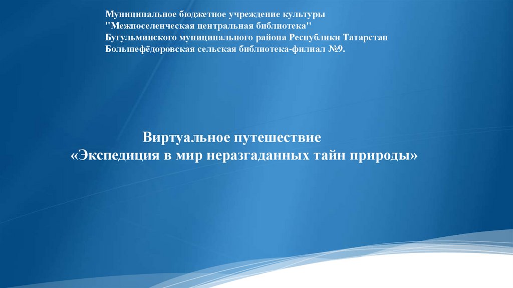 Виртуальное путешествие «Экспедиция в мир неразгаданных тайн природы»