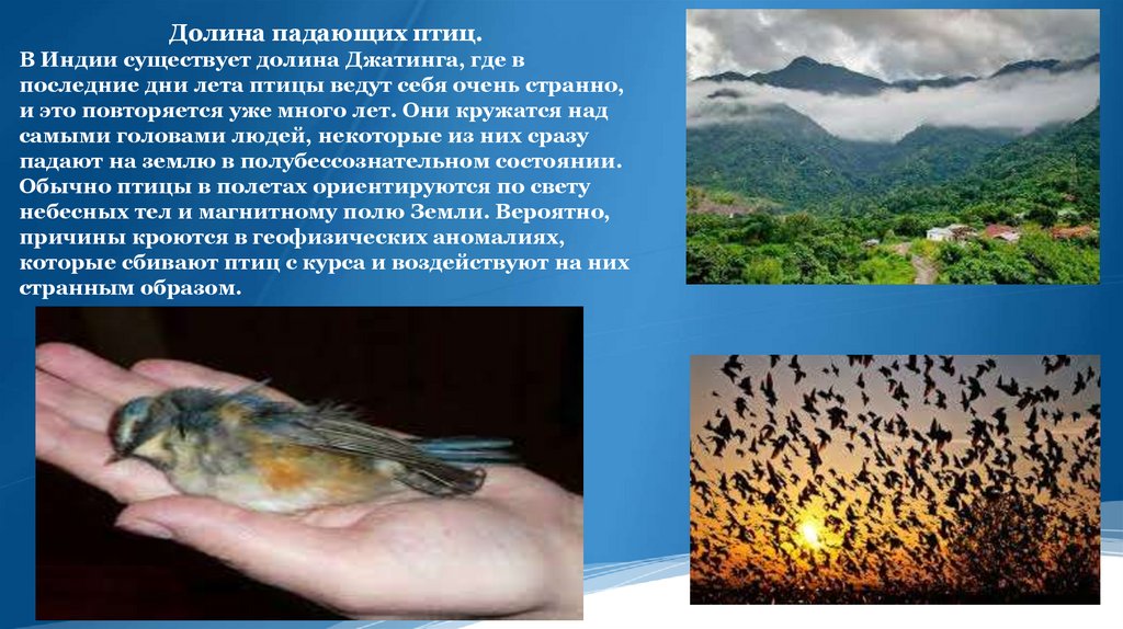 Долина падающих птиц.В Индии существует долина Джатинга, где в
