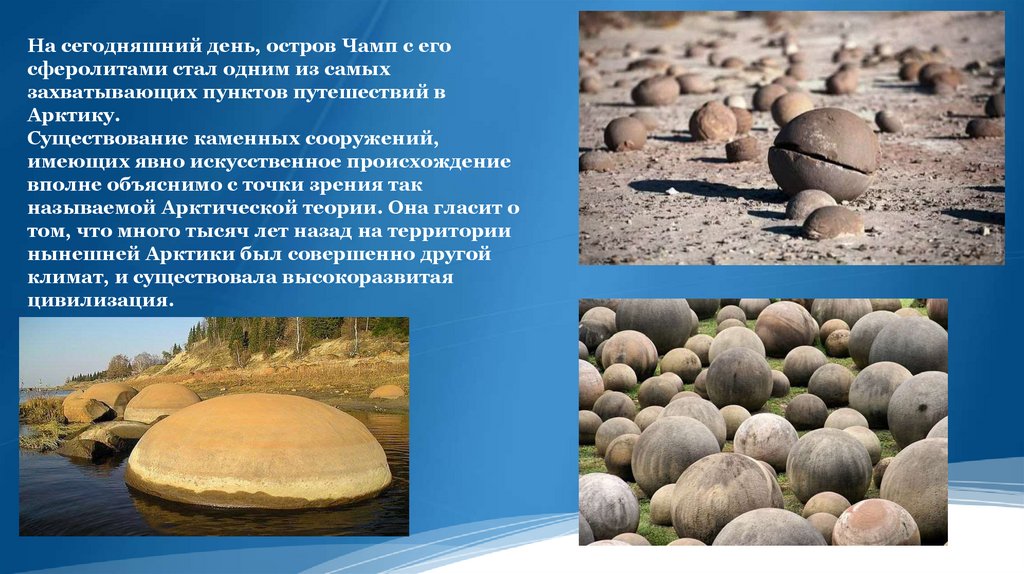 На сегодняшний день, остров Чамп с егосферолитами стал одним из самых