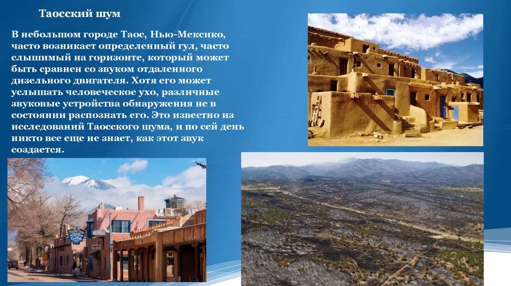 Таосский шумВ небольшом городе Таос, Нью-Мексико,