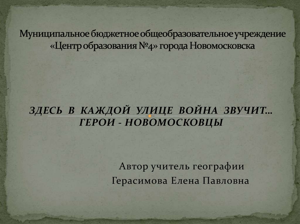 ЗДЕСЬ В КАЖДОЙ УЛИЦЕ ВОЙНА ЗВУЧИТ…ГЕРОИ - НОВОМОСКОВЦЫ
