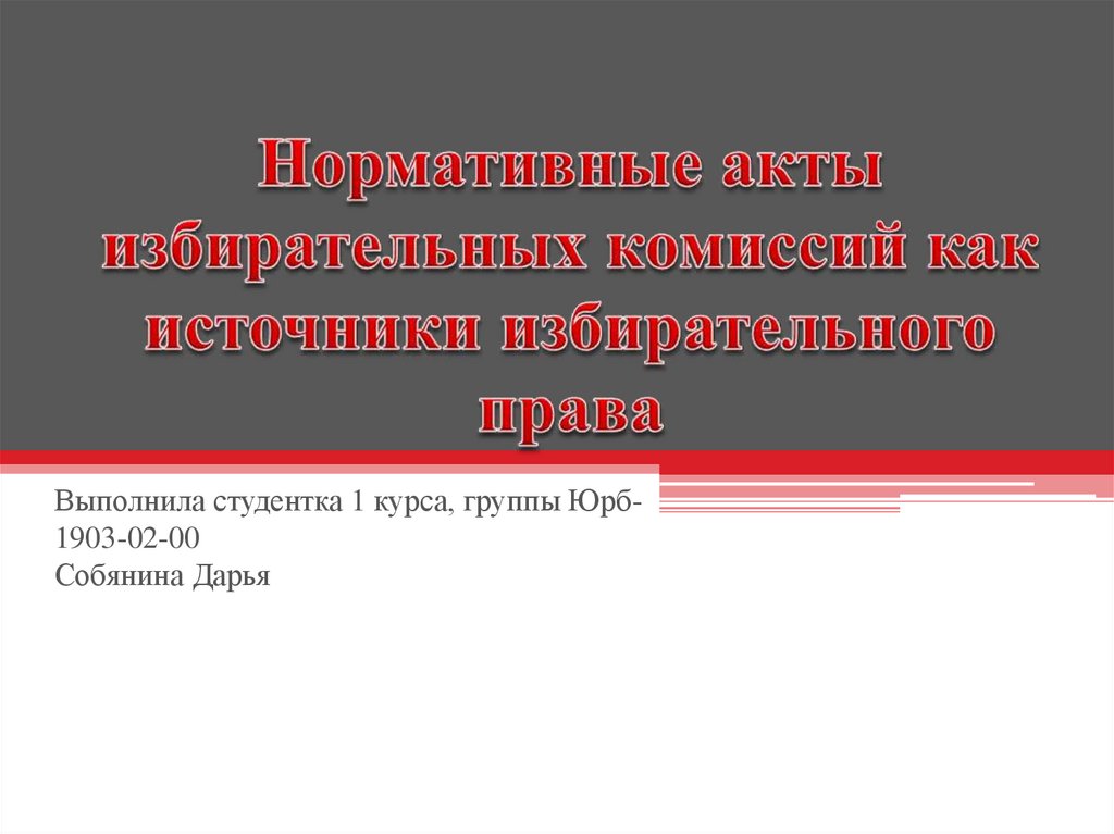 1. Нормативные акты избирательных комиссий как источники избирательного права
