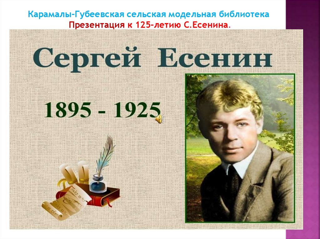 Карамалы-Губеевская сельская модельная библиотекаПрезентация к 125-летию С.Есенина.