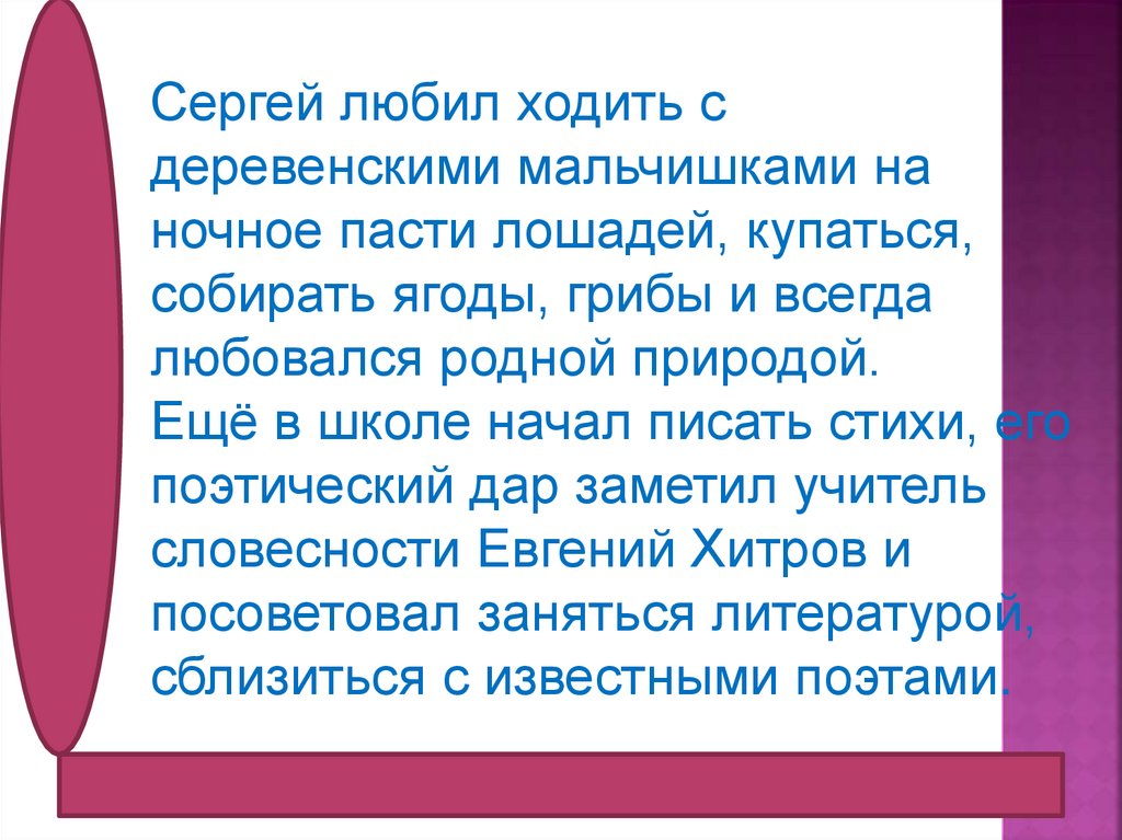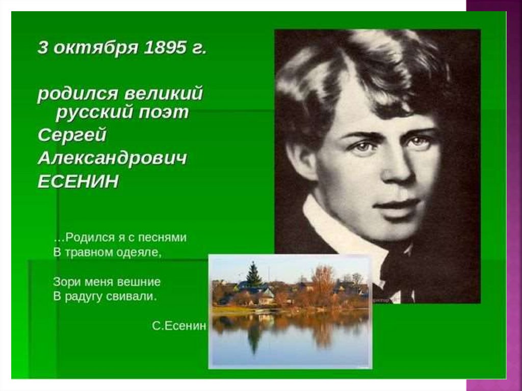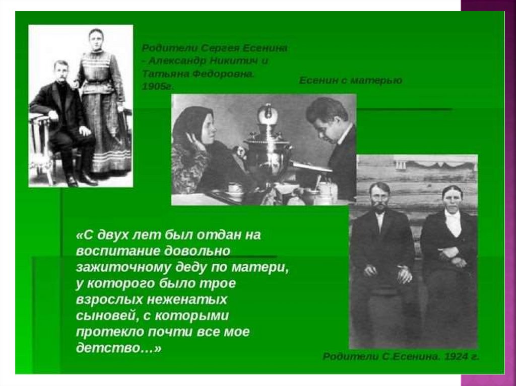 3. Родился поэт 3 октября 1895 года в селе Константиново Рязанской области. Родители – потомственные рязанские хлеборобы. Мать