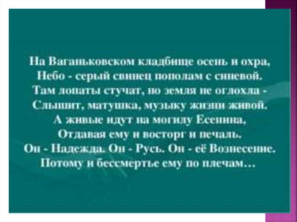 11. 1916 год. Выходит первый сборник его стихов “Радуница”. О Есенине заговорили как о творце “дивных красок”, художнике слова с