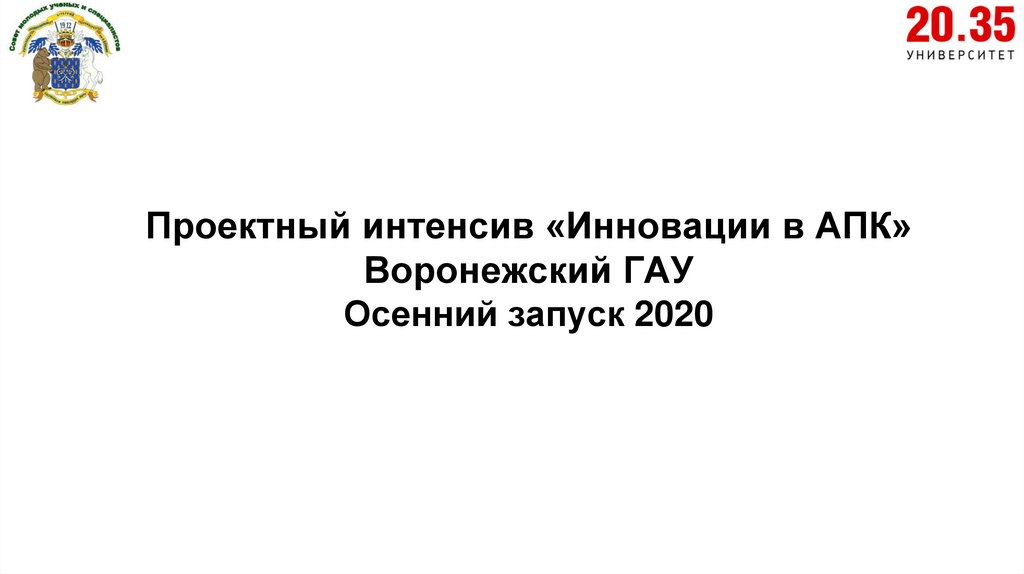 1. Проектный интенсив «Инновации в АПК» Воронежский ГАУ Осенний запуск 2020