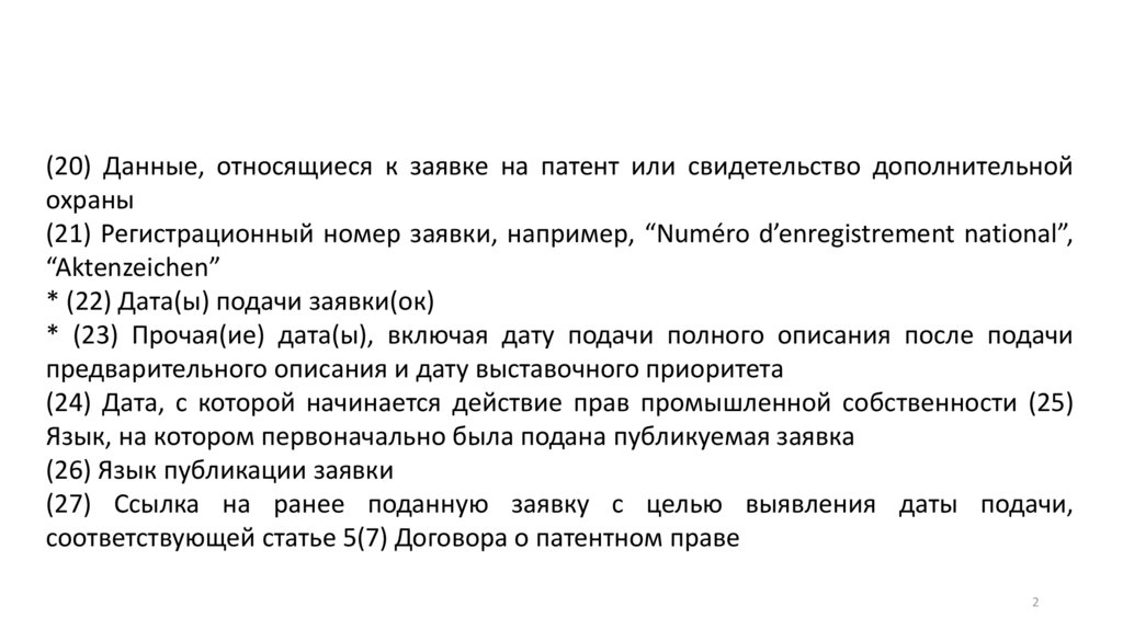 (21) Регистрационный номер заявки, например, “Numéro d’enregistrement national”,