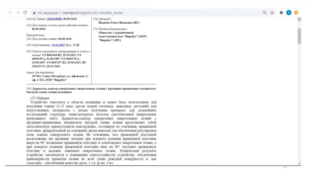 Идентификация патента, свидетельства дополнительной охраны или