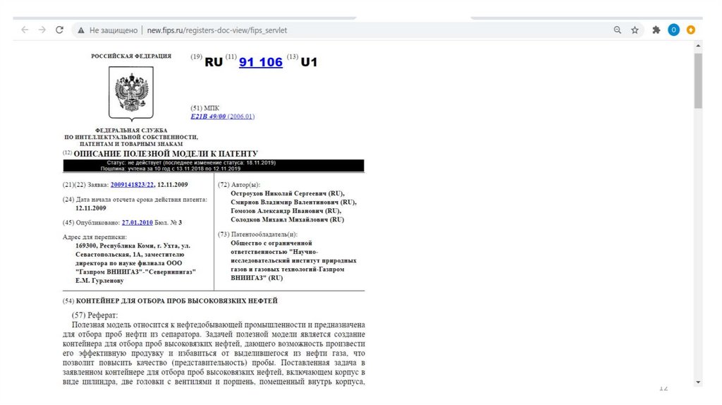 патентных бюллетенях.