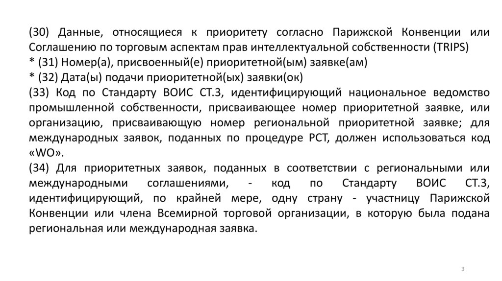 (30) Данные, относящиеся к приоритету согласно Парижской Конвенции илиСоглашению по торговым аспектам прав интеллектуальной собственности (TRIPS)