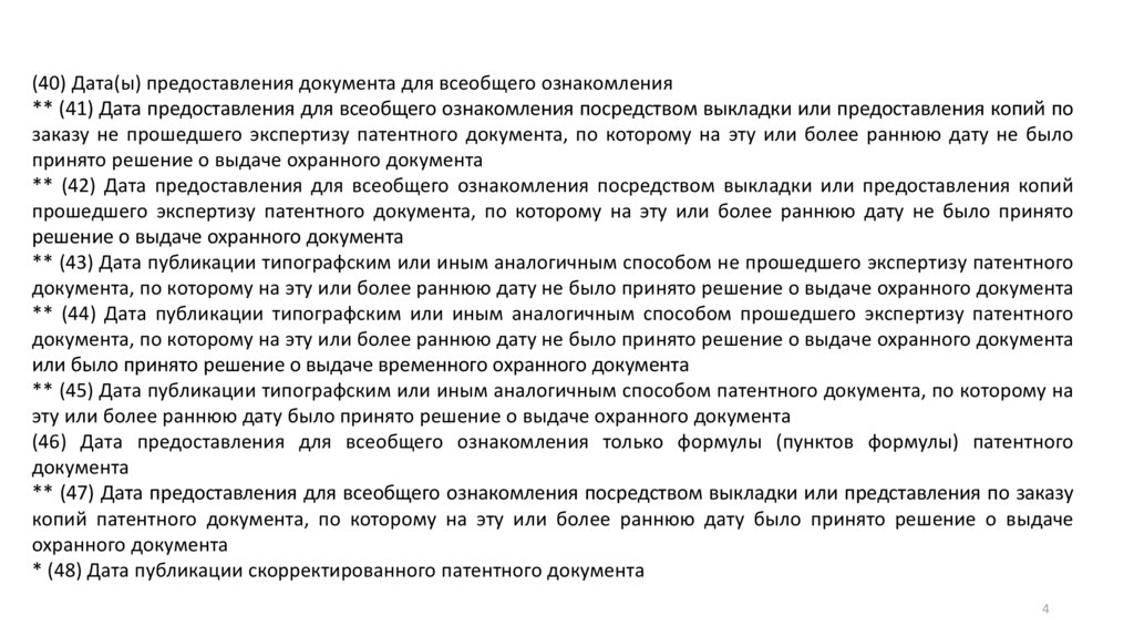(40) Дата(ы) предоставления документа для всеобщего ознакомления** (41) Дата предоставления для всеобщего ознакомления посредством выкладки или предоставления копий по