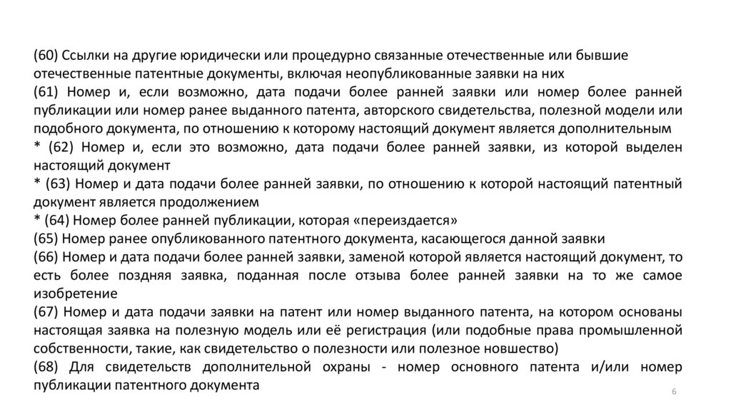 (60) Ссылки на другие юридически или процедурно связанные отечественные или бывшиеотечественные патентные документы, включая неопубликованные заявки на них