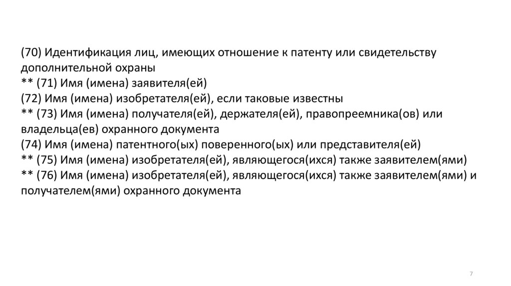 (70) Идентификация лиц, имеющих отношение к патенту или свидетельствудополнительной охраны