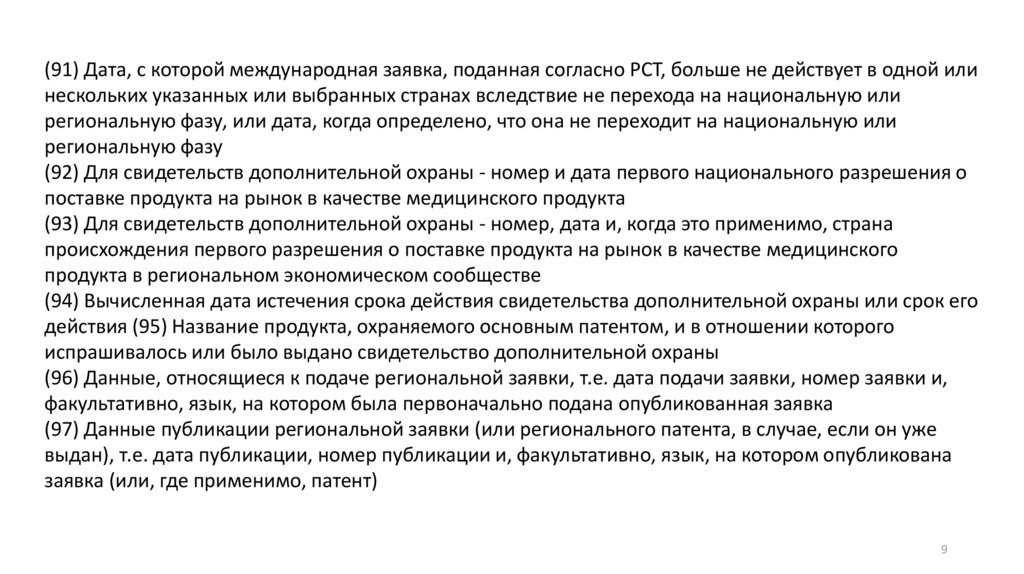 (91) Дата, с которой международная заявка, поданная согласно PCT, больше не действует в одной илинескольких указанных или выбранных странах вследствие не перехода на национальную или