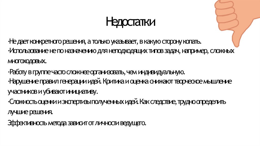 Недостатки·Недаетконкретногорешения,а только указывает,вкакую сторонукопать.