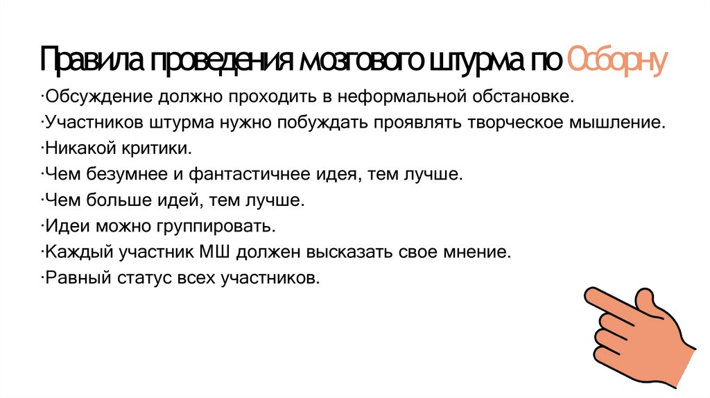 Правила проведениямозговогоштурма поОсборну·Обсуждение должно проходить в неформальной обстановке.