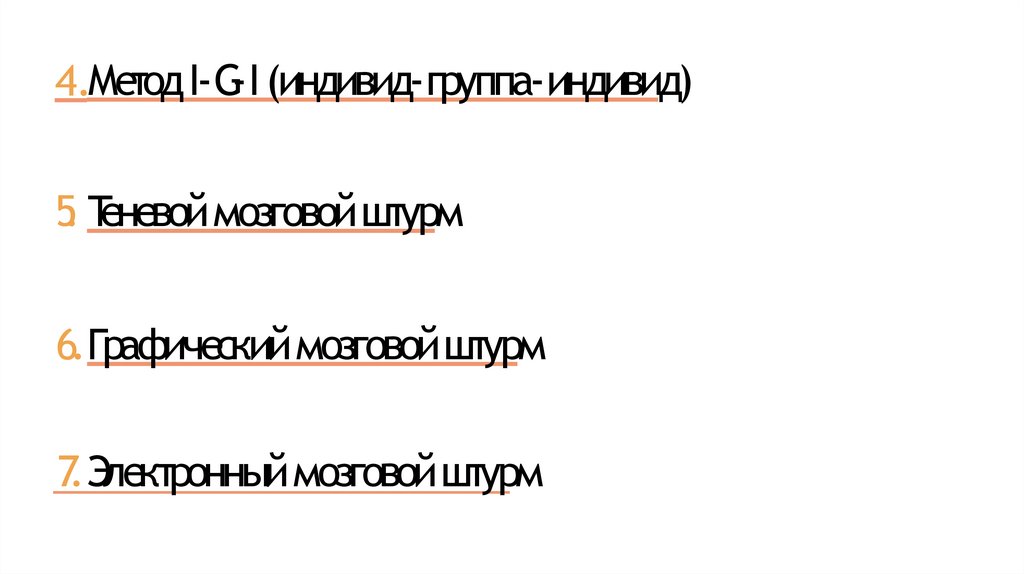 4.МетодI-G-I (индивид-группа-индивид)5. Теневоймозговойштурм