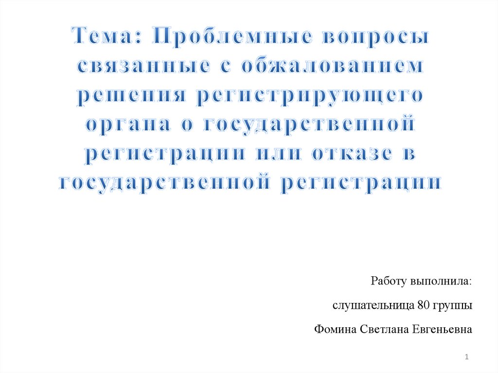 Проблемные вопросы с обжалованием решения регистрирующего органа о государственной регистрации или отказе в гос. регестрации