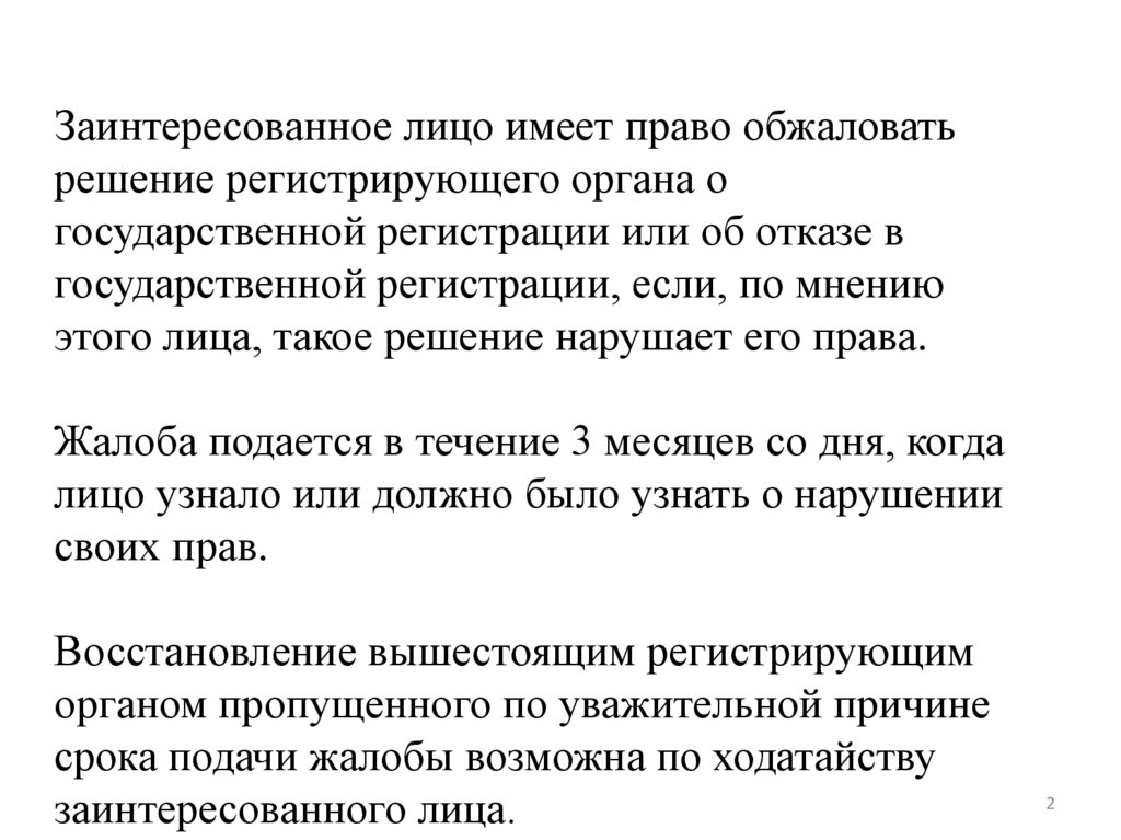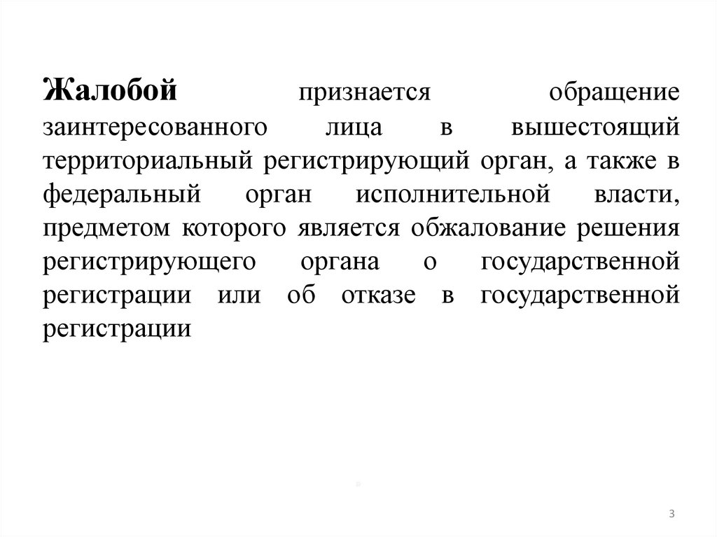 Жалобы на решения регистрирующего органа о государственнойрегистрации и решения об отказе в государственной регистрации,
