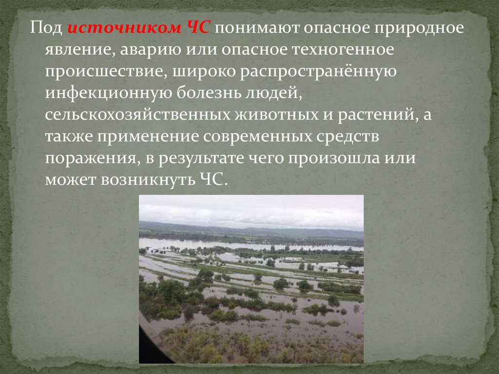 Под источником ЧС понимают опасное природноеявление, аварию или опасное техногенное