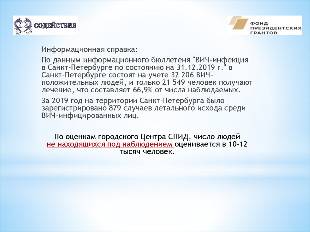 Сопровождение «потерянных» пациентов в СПб ГБУЗ Центр СПИД