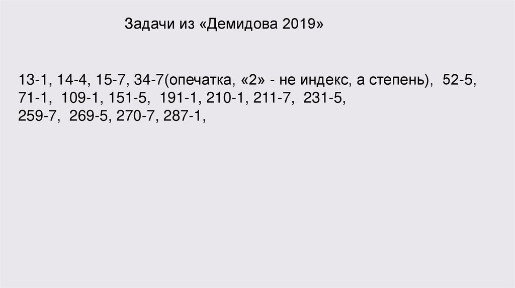 Задачи из «Демидова 2019»13-1, 14-4, 15-7, 34-7(опечатка, «2» - не индекс, а степень), 52-5,