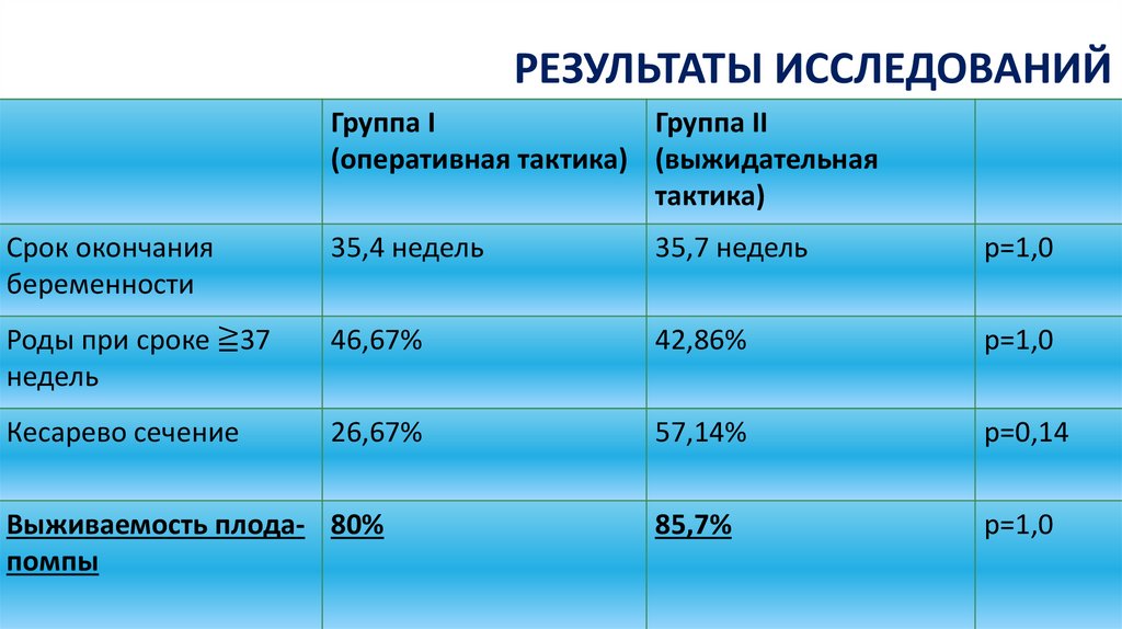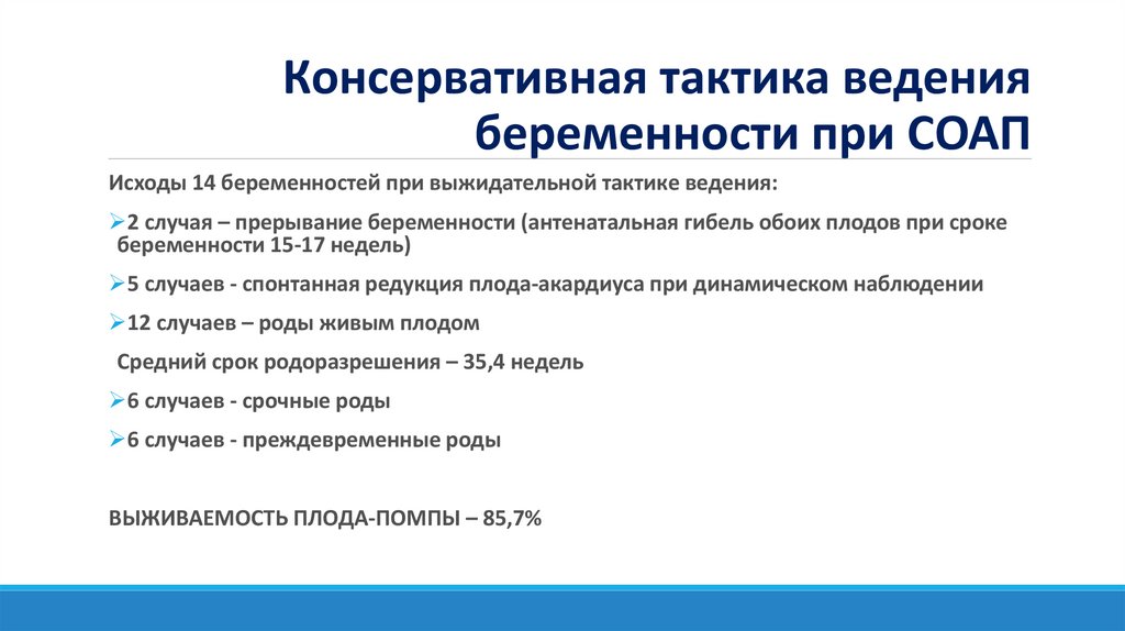 выживаемости плода-помпы при использовании как оперативной, так и консервативной