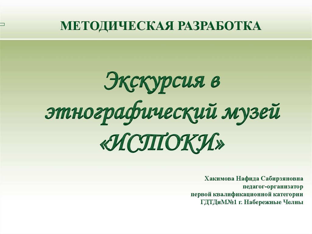 МЕТОДИЧЕСКАЯ РАЗРАБОТКАЭкскурсия в
