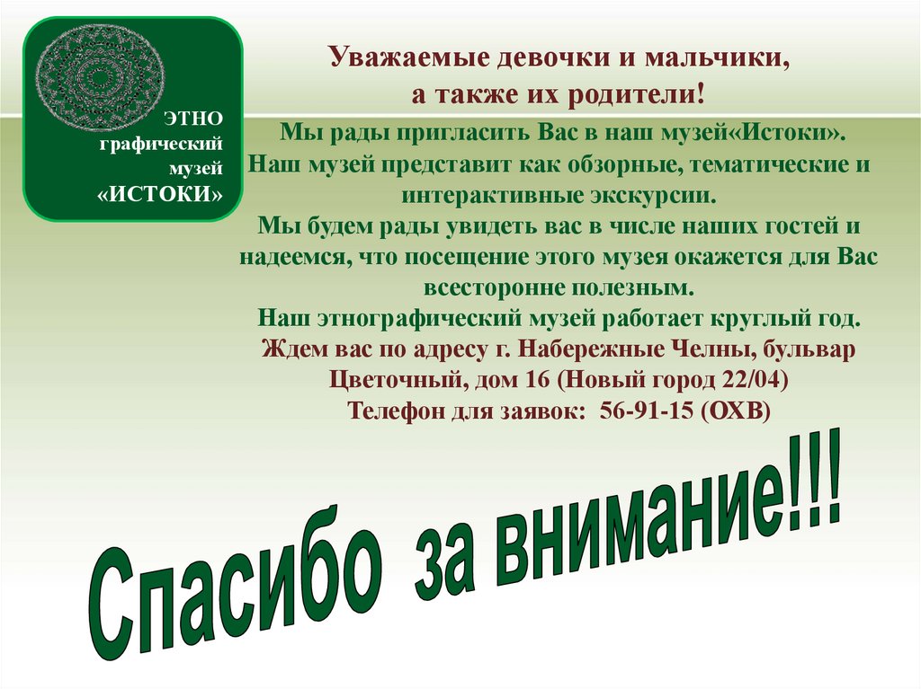 Мы рады пригласить Вас в наш музей«Истоки».