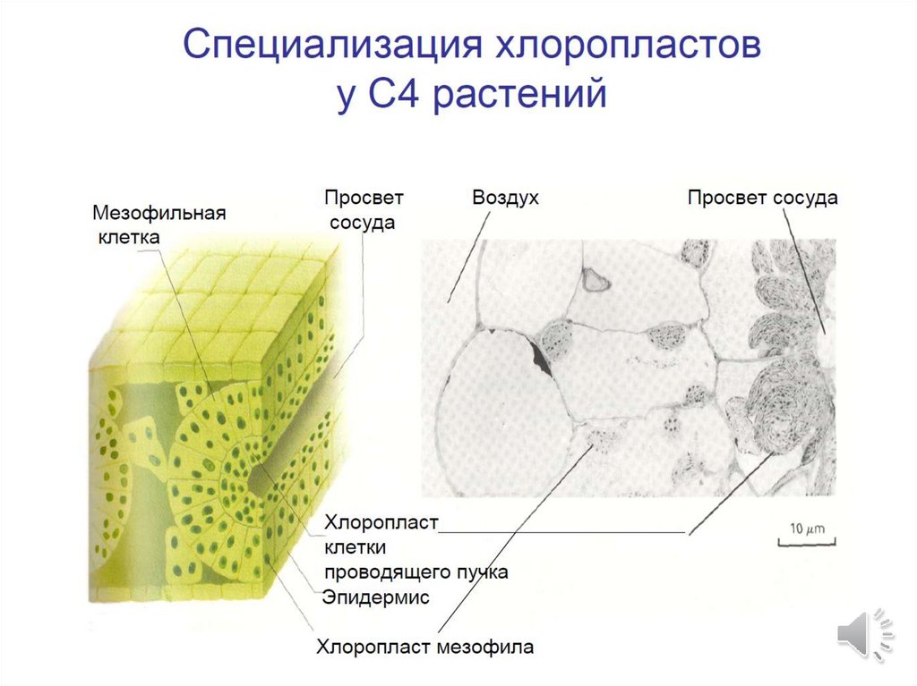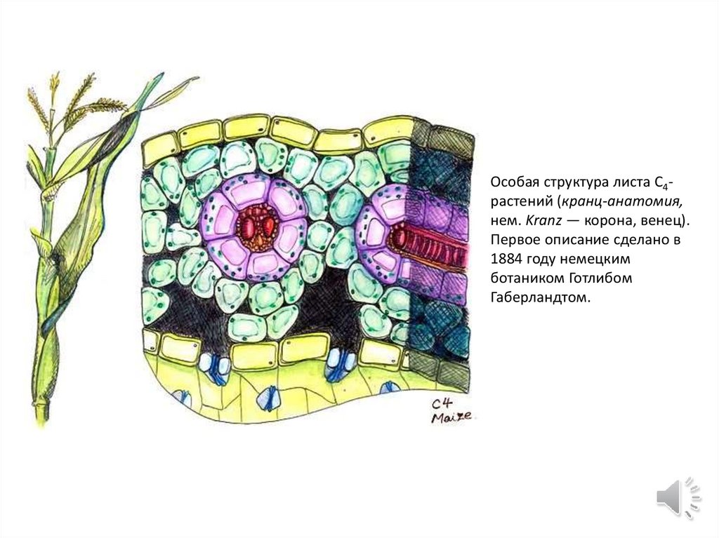 Особая структура листа C4растений (кранц-анатомия,нем. Kranz — корона, венец).